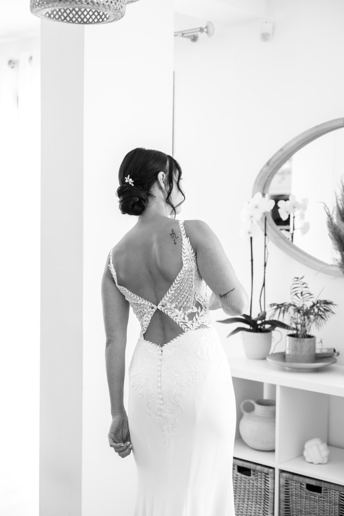 Lisa sâest prĂ©parĂ©e entourĂ©e de ses amies, dans un cocon de bienveillance et dâamour. Robe suspendue, maquillage en cours, petits Ă©clats de rire⊠chaque instant avait une importance particuliĂšre.